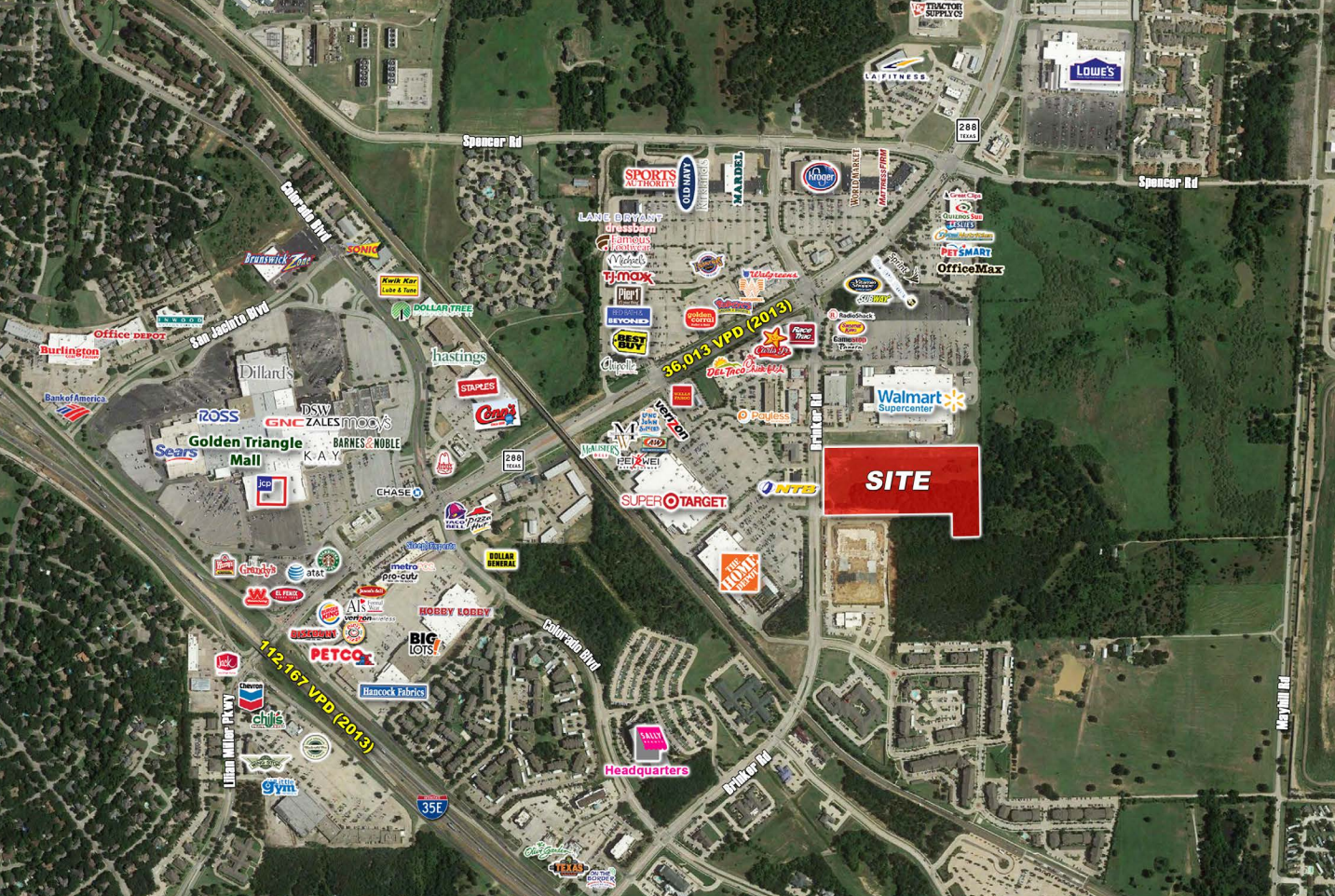 Located on Brinker Rd just south of Loop 288 in a dense retail area of Denton, Texas. Directly adjacent to Walmart and across the street from Super Target and Home Depot